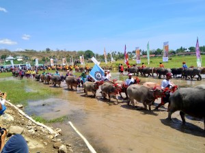 Each buffalo is lead from the ring in its nose by a man, lash at the ready, pants rolled above his knees. The women cheer from the sidelines, their Hijabs concealing everything but their excitement. Thousands of hooves, grouped into villages, trample past, churning green to brown. The winning jockey not only brings glory to his farm and family, but he also banks 6,000,000 million Rupiah.